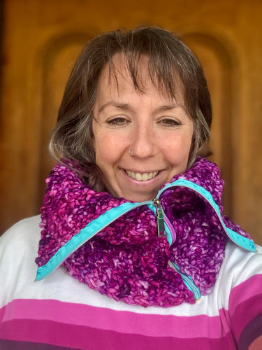 Luxury women's hand knit high fashion winter cowl cozy wool slow fashion gift zipper couture purple